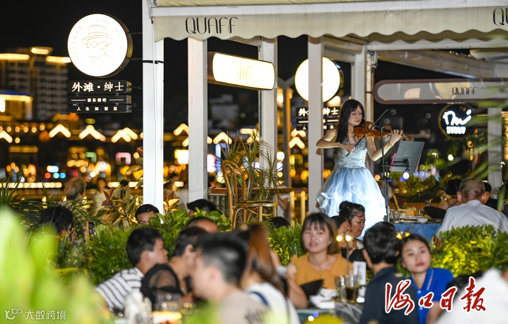 近年来,海口骑楼-外滩文化街区不断进行商业更新和业态优化组合,让历史文化、非遗艺术与商业互动相融合,满足夜食、夜游、夜购、夜娱、夜体、夜品、夜演、夜宿等需求,更聚集了传统老字号、非遗手工技艺等海南地方特色,展示着海口百年来的文化余脉、风土人情及海岛历史丰富内涵,夜间旅游、消费场景人来人往,绘就出一幅生动的城市画卷。