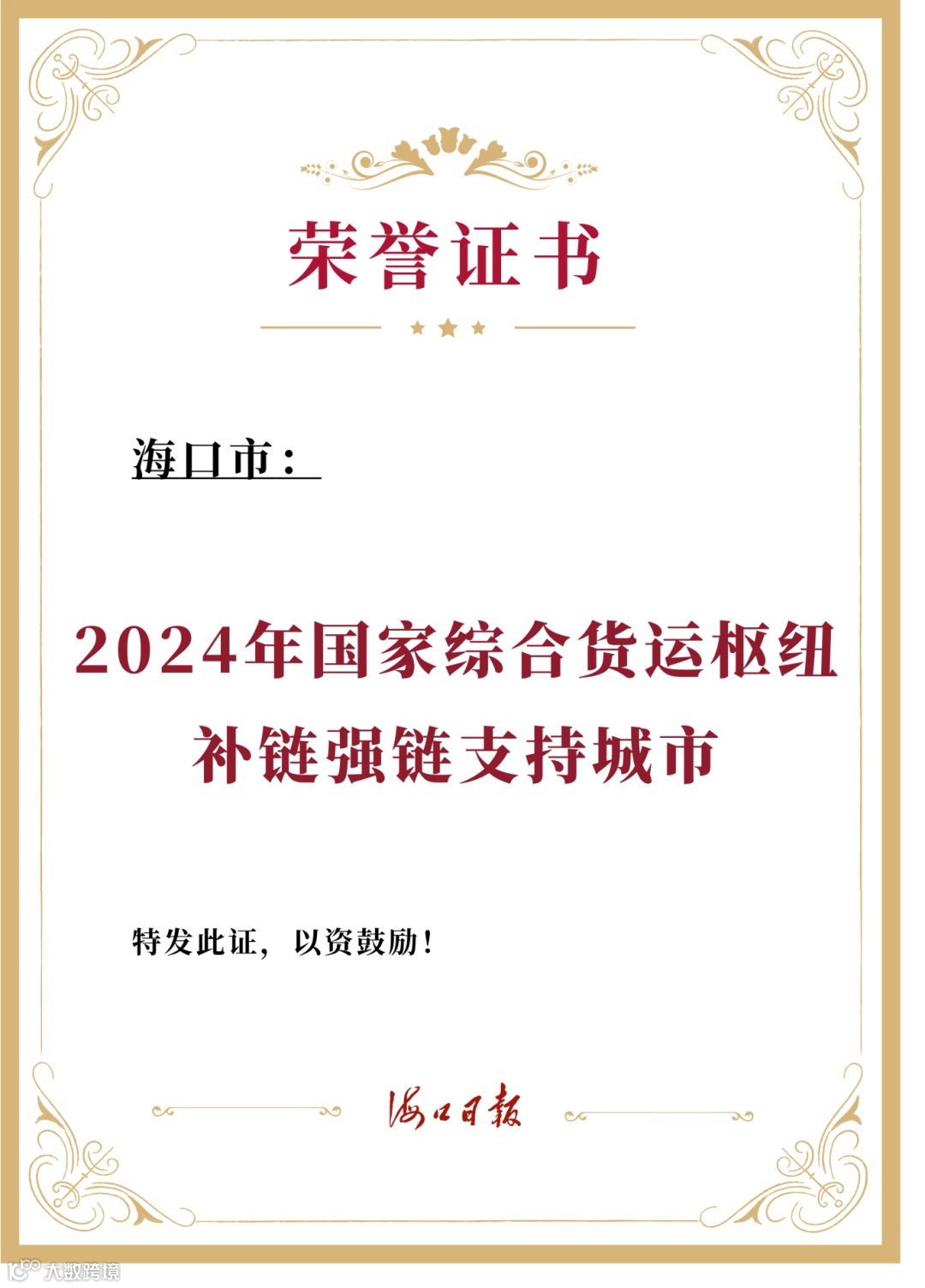 8月份,交通运输部政府网站公示了2024年国家综合货运枢纽补链强链支持城市名单,其中,海口入选。