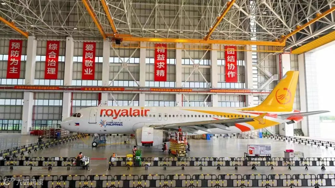 在海口空港综合保税区,一架菲律宾皇家航空的空客A320飞机顺利交付,海口空港综合保税区首单进境飞机维修业务圆满完成。石中华 摄