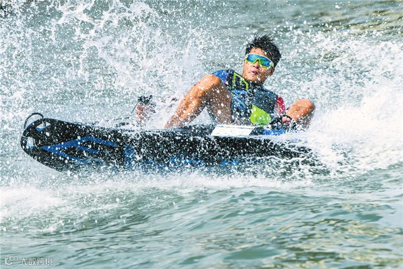 越来越多市民游客参与动力板冲浪,感受海上的速度与激情。苏弼坤 摄