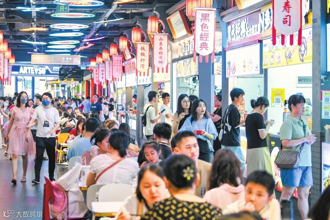 市民游客在友谊阳光城小吃街品尝美食。苏弼坤 摄