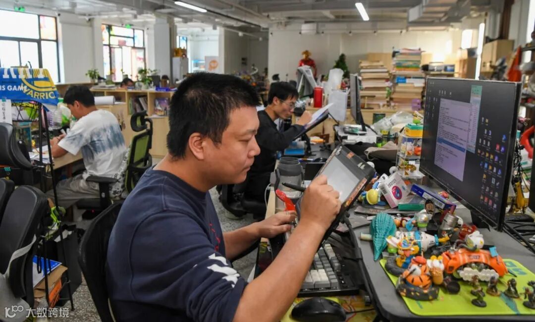 在龙华区动漫小镇“燚界·漫创社”办公区,漫画创作者正在认真创作。图片来源:海口日报