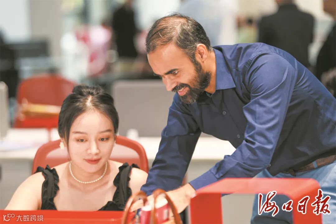 复兴城跨境数据服务产业基地先后出台一系列扶持政策,在国际通信算力设施使用、租金减免、基金投资等方面扶持入驻企业。图为外企工作人员在交流业务。海口市融媒体中心记者 康登淋 摄