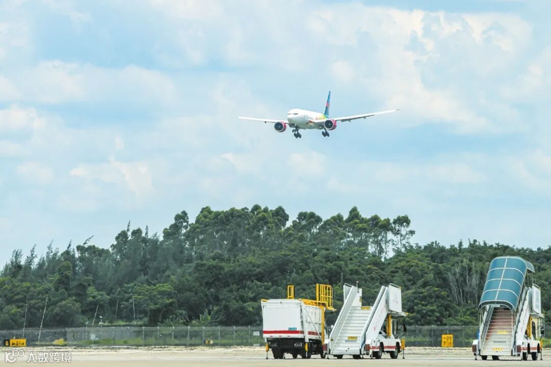 一架宽体全货机即将在美兰机场降落。海口日报记者 苏弼坤 摄