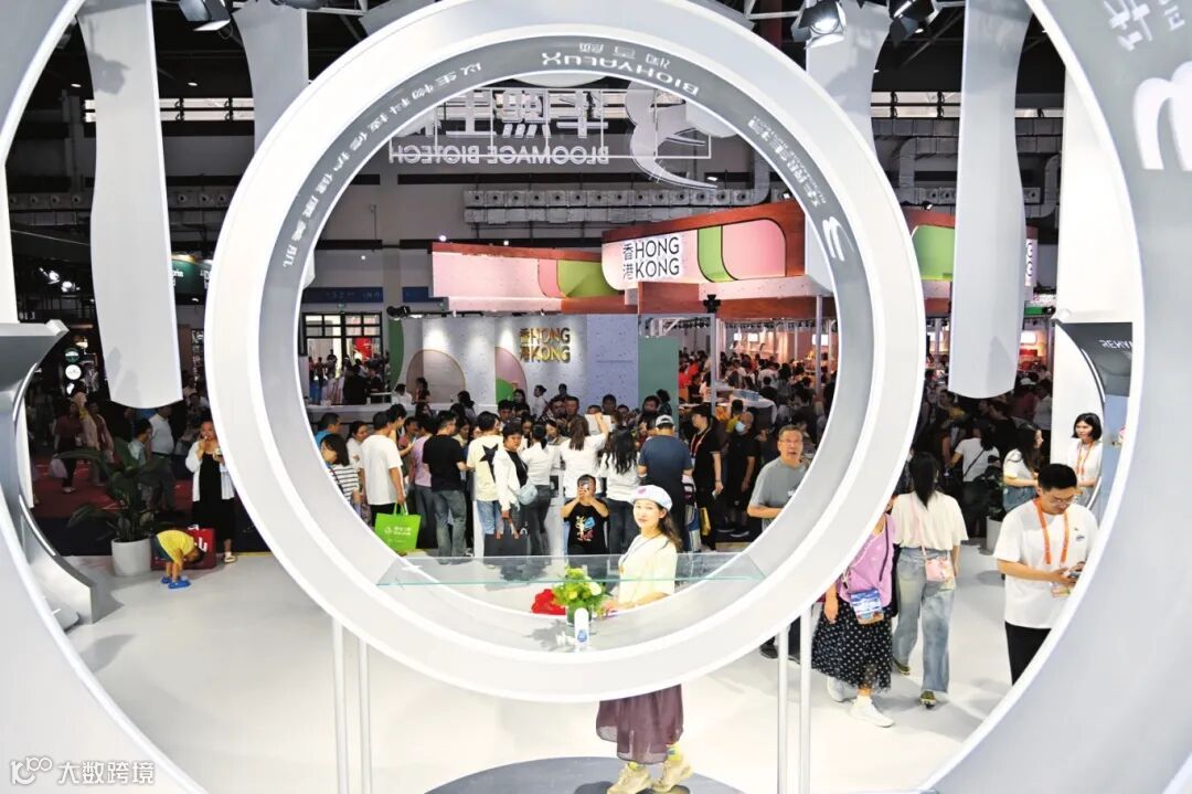 市民在第四届消博会华熙生物展台前拍照。海口日报记者 石中华 摄