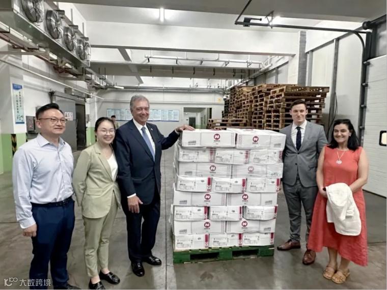 马托斯部长一行在中铁冷链与从乌拉圭进口的牛肉合影留念