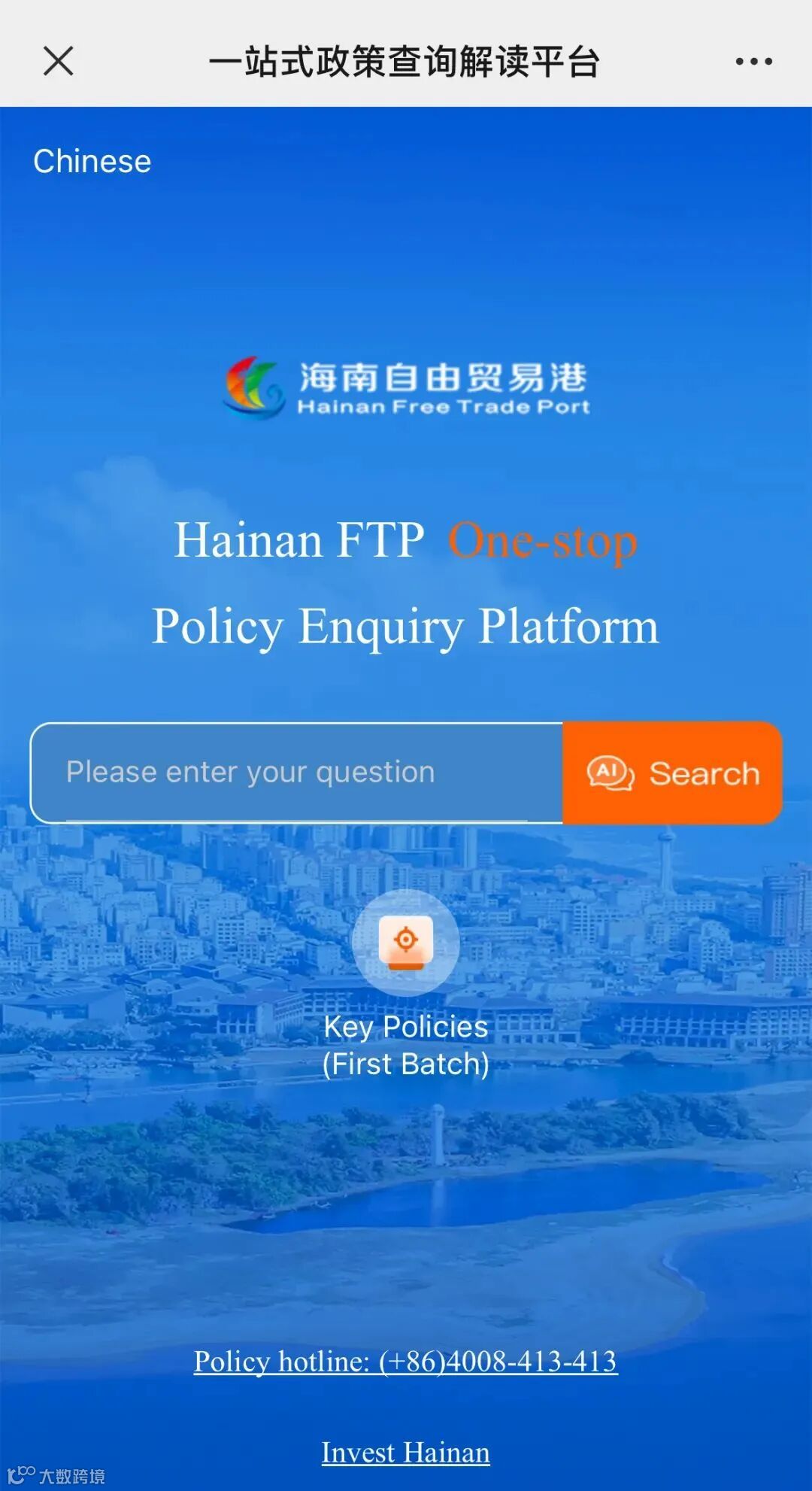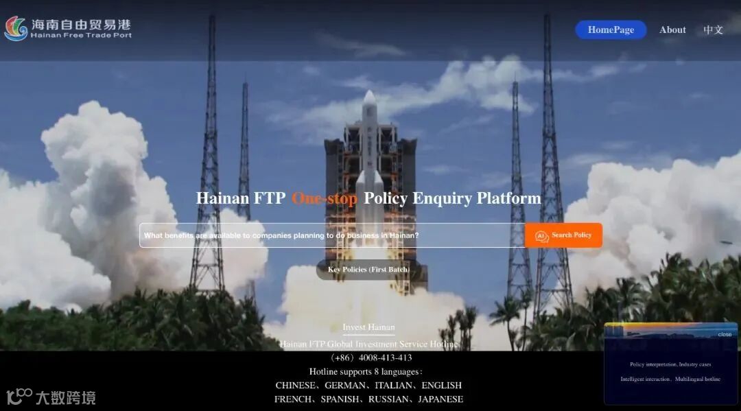 外籍人士体验海南自由贸易港一站式政策查询解读平台英文版。