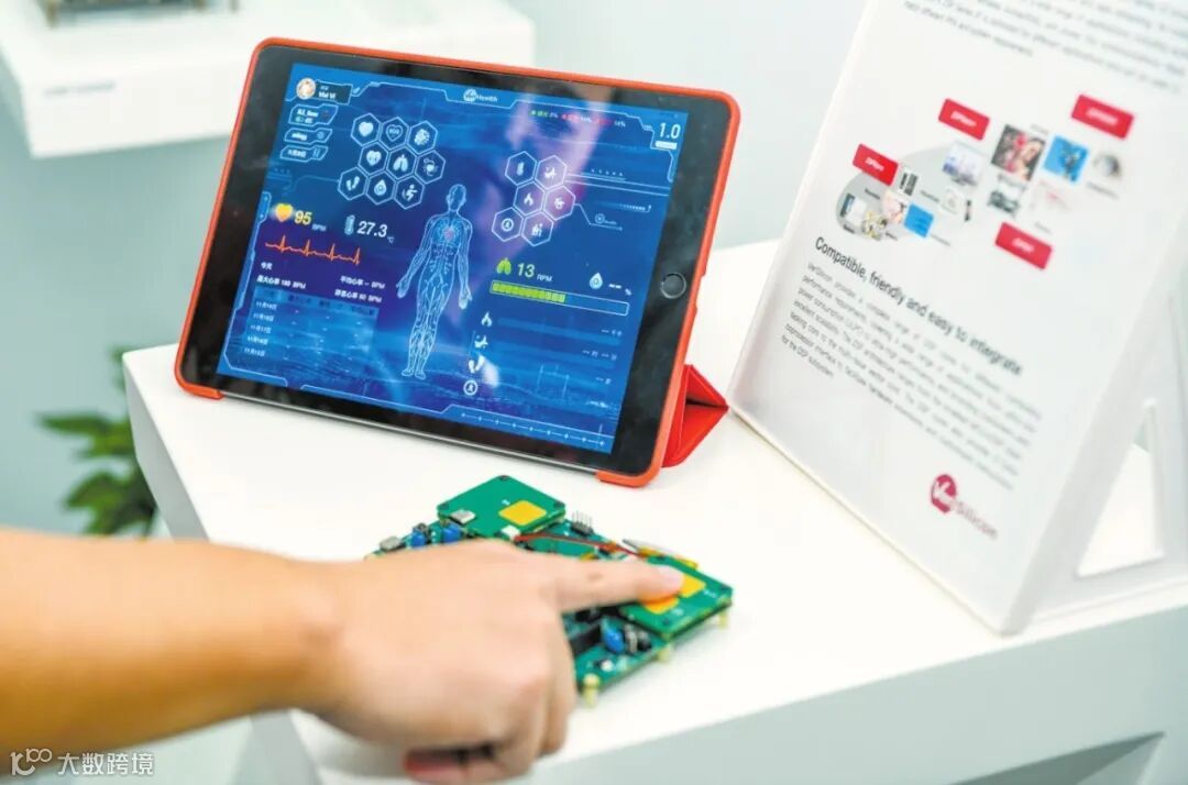 芯原微电子自主研发的新健康平台Verihealth,其传感器检测的数据可以在芯片内进行计算,并把结果通过蓝牙传输到平板电脑上。海口日报记者 康登淋 摄