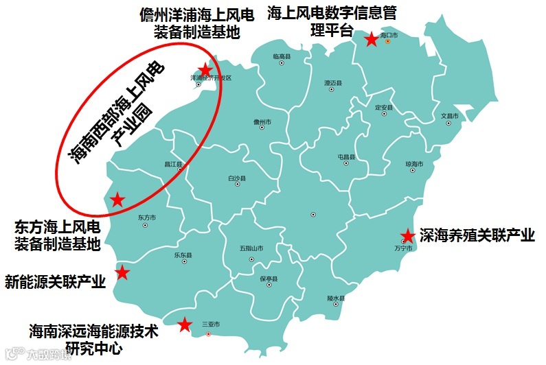 海上风电“一园两基地、卫星服务群” 。图片来自《海南省风电装备产业发展规划(2022-2025 年)》