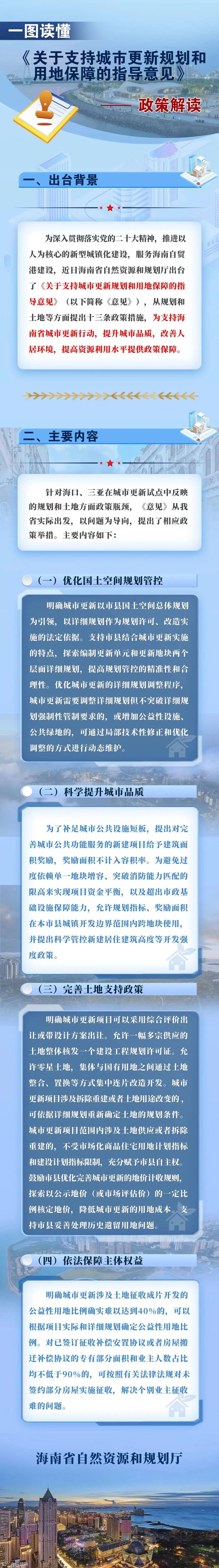 近日,海南省自然资源和规划厅出台了《关于支持城市更新规划和用地保障的指导意见》(以下简称《意见》),从规划和土地等方面提出十三条政策措施,支持海南省城市更新行动,提升城市品质,改善人居环境,提高资源利用水平提供政策保障。
