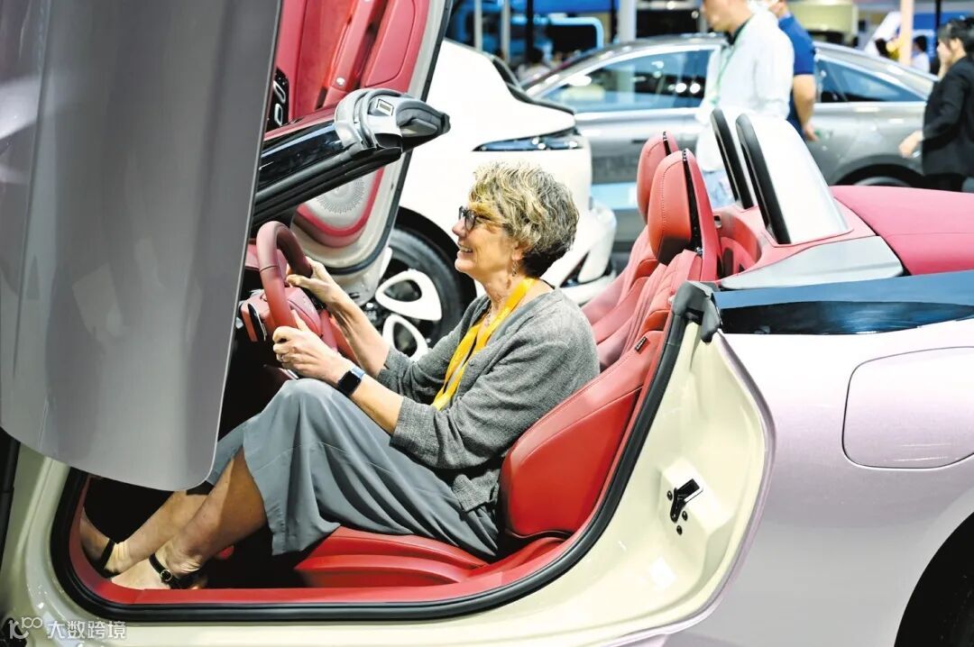 在2023世界新能源汽车大会上,与会嘉宾在体验敞篷跑车。海口日报报记者 石中华 摄