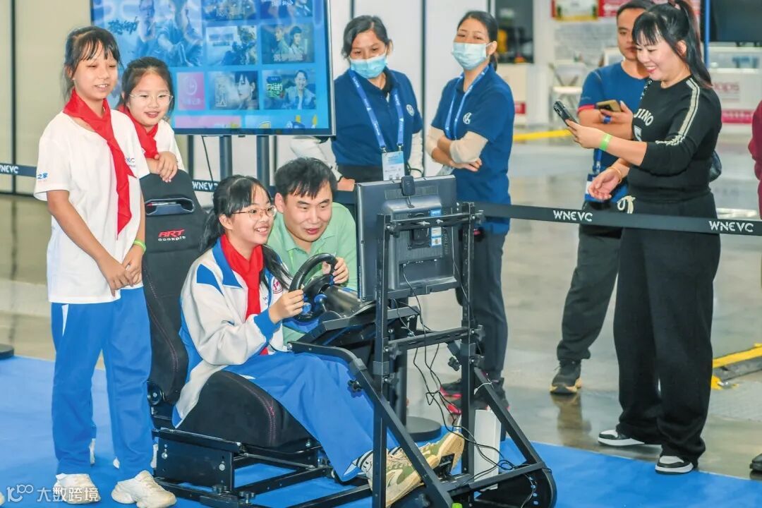 在2023世界新能源汽车大会青少年汽车科技嘉年华上,汽车模拟驾驶活动吸引参会人员现场体验。海口日报记者 孙士杰 摄