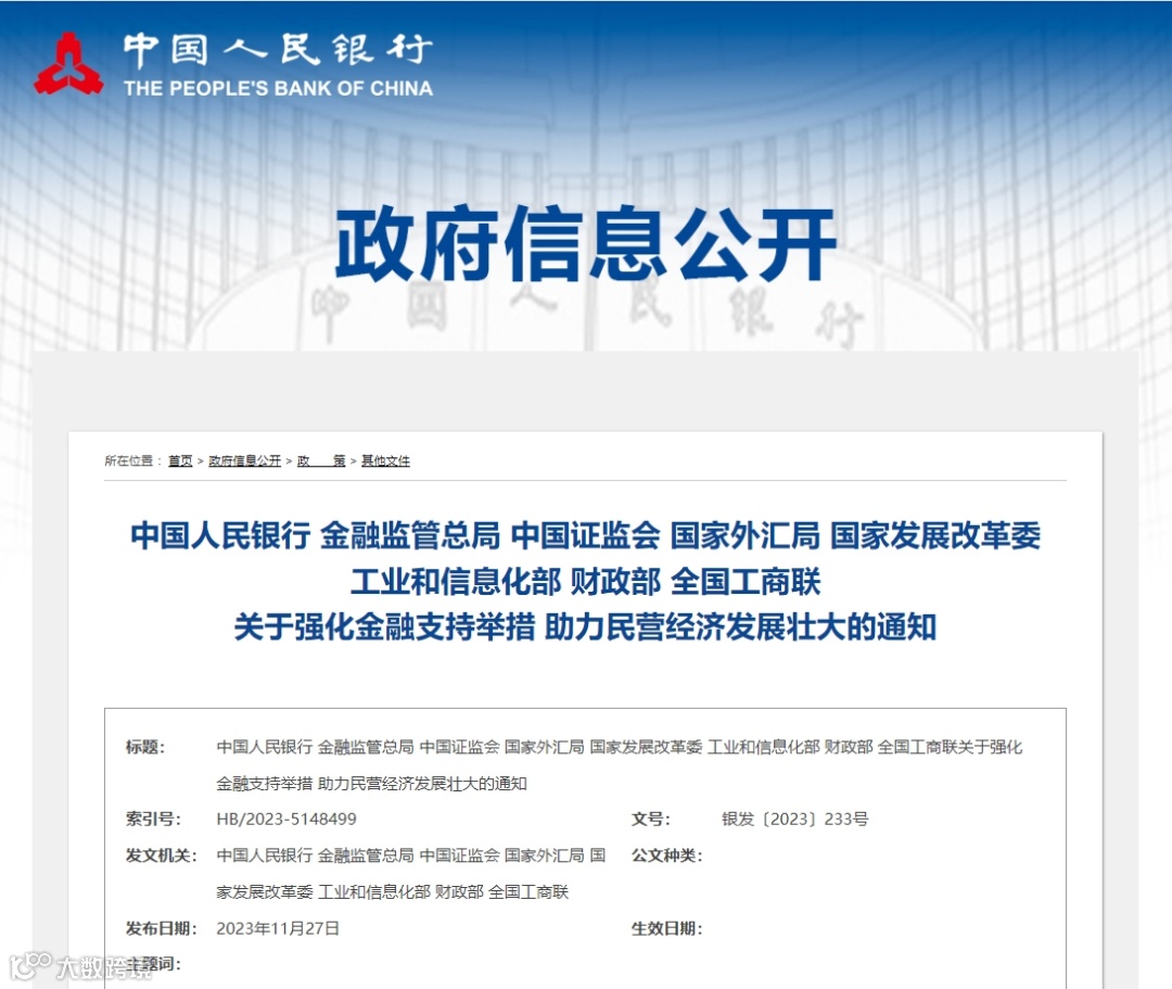 中国人民银行 金融监管总局 中国证监会 国家外汇局 国家发展改革委 工业和信息化部 财政部 全国工商联关于强化金融支持举措 助力民营经济发展壮大的通知