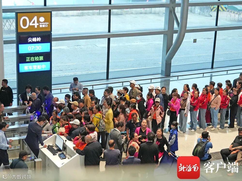 新海客运综合枢纽试运营。第一批出岛旅客获赠伴手礼。新海南客户端记者 汪承贤 摄