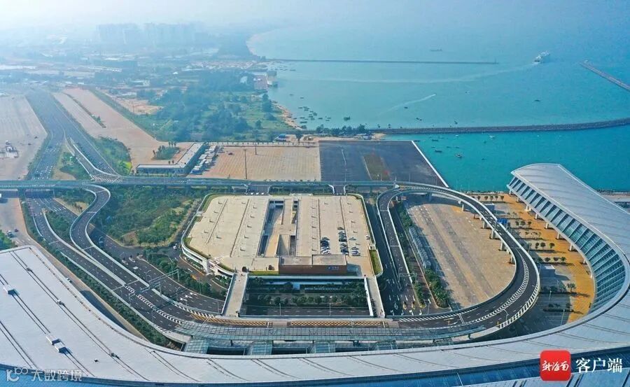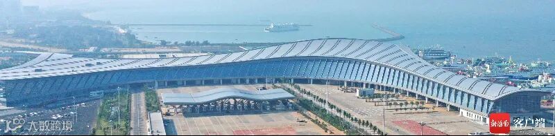 海口新海滚装码头客运综合枢纽站便捷通道航拍图。新海南客户端记者 汪承贤 摄