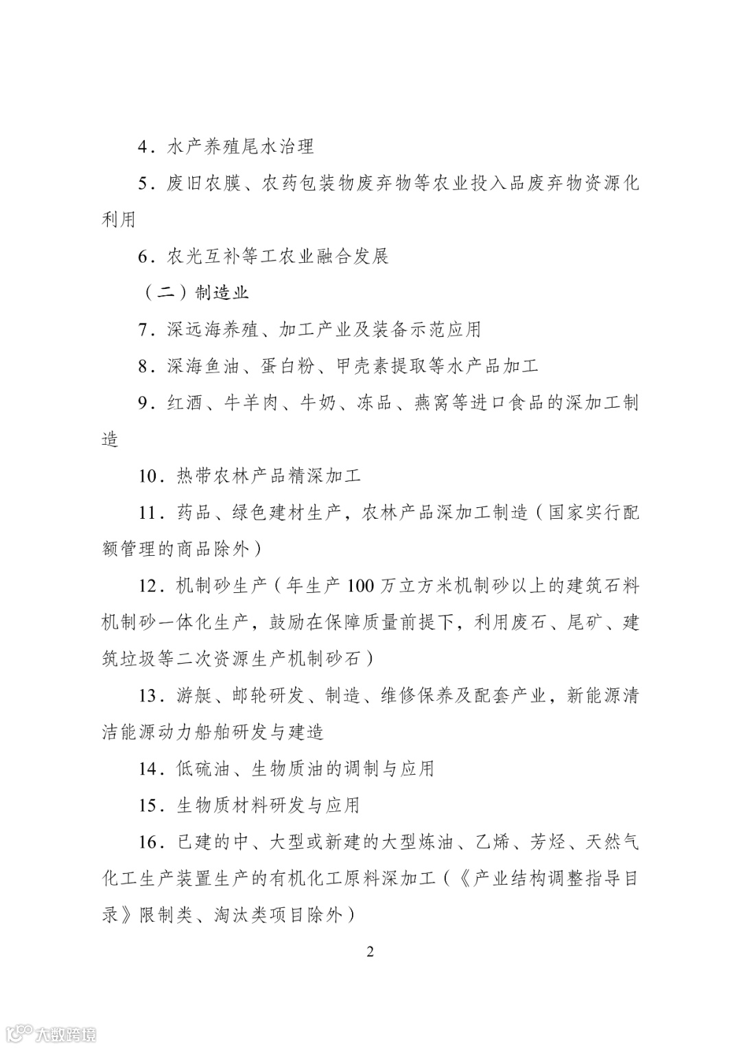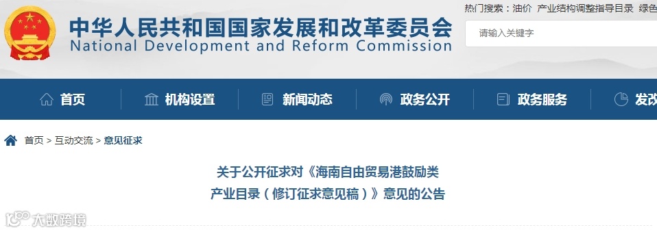 2023年10月21日,国家发改委发布《海南自由贸易港鼓励类产业目录(修订征求意见稿)》(共171项),修订稿主要增加了以下产业: