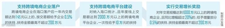 《征求意见稿》提出,海口将支持跨境电商企业落户,跨境电商企业在海口落户后一年内交易额达到1亿元以上的,按交易额给予企业0.5%的扶持,扶持金额最高不超过200万元。