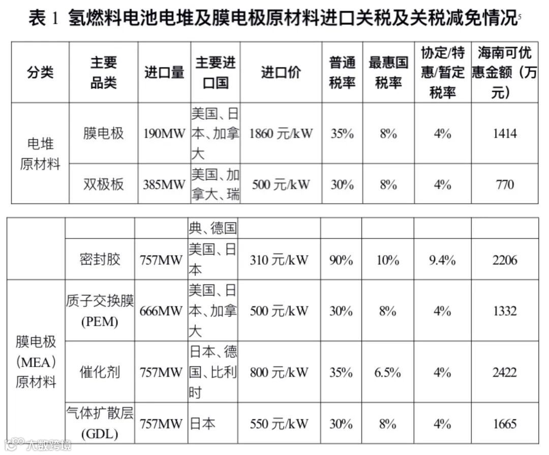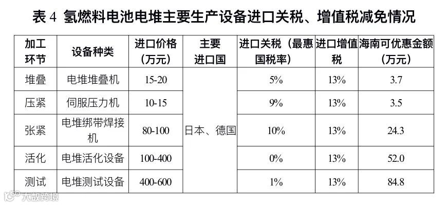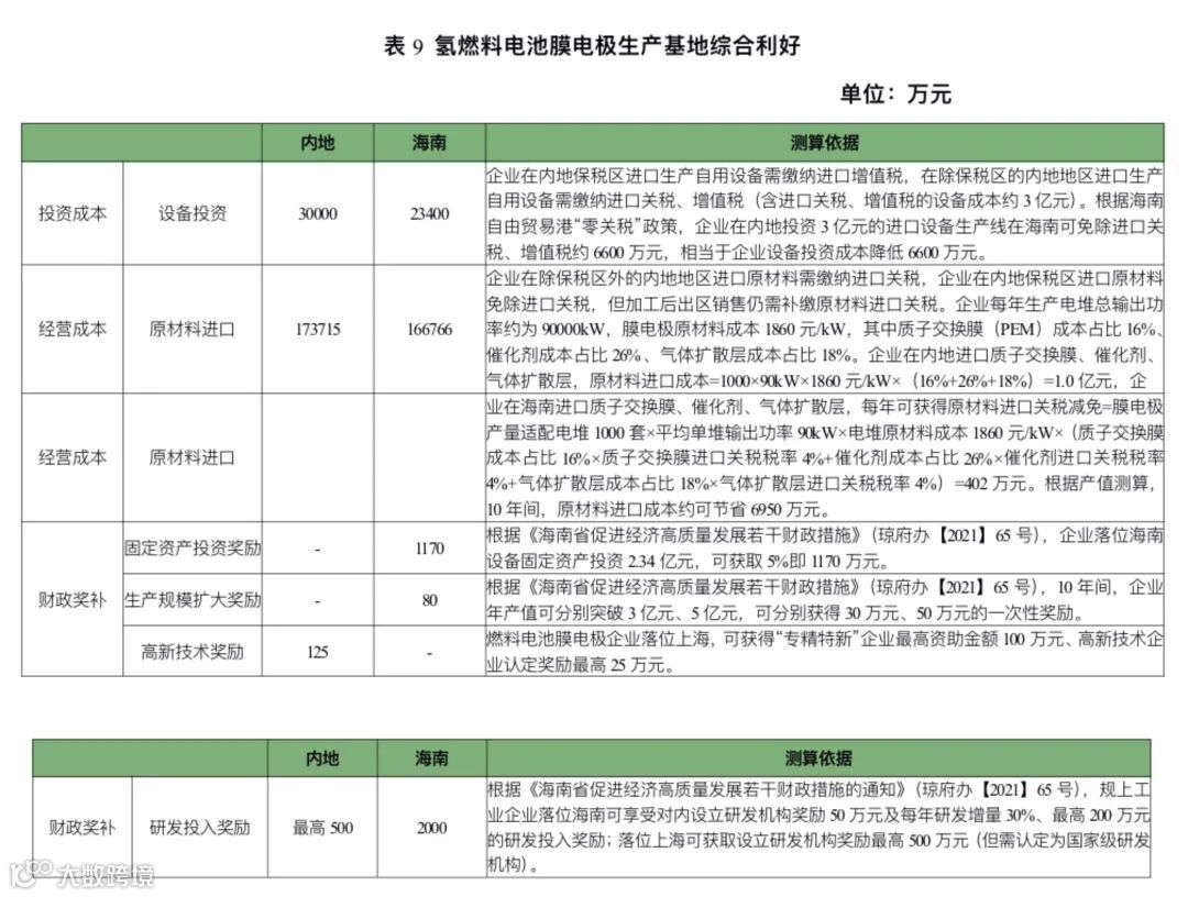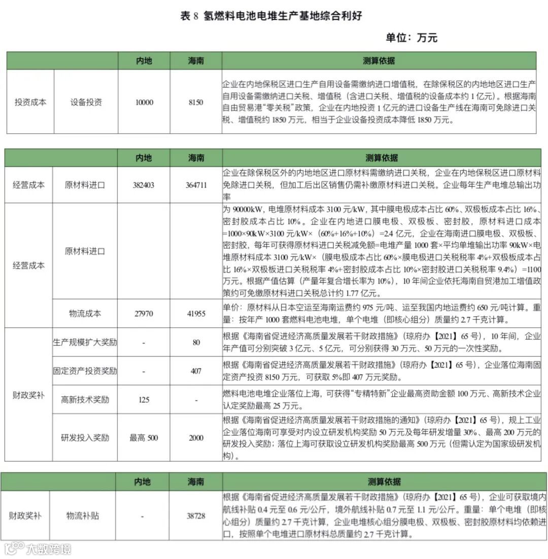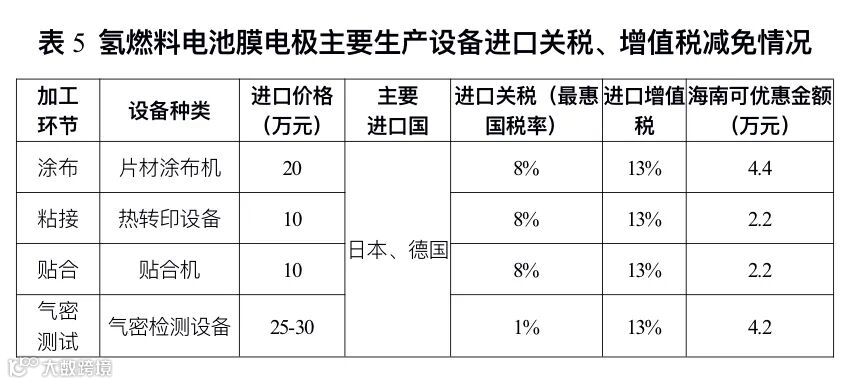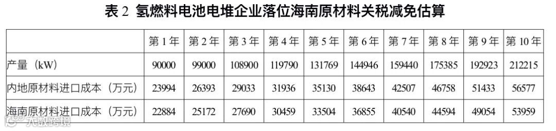 (三)氢燃料电池电堆和膜电极研发制造企业落位海南将享受自贸港政策带来的成本利好