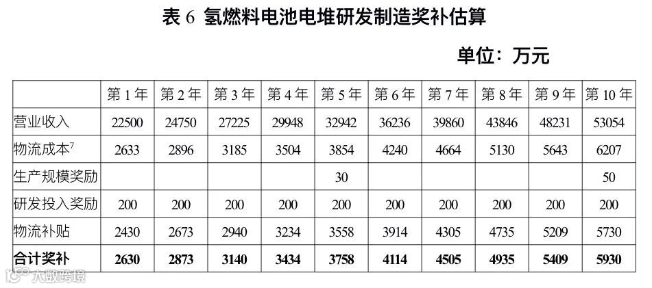 以企业落位海南自由贸易港,年产1000套50-130kW的燃料电池电堆为例。按电堆价格2500元/kW、企业产量年复合增长率10%,10年间企业可获取生产规模奖励80万元、物流补贴可达3.8亿元(原材料进口全部采取空运);若企业在海南自由贸易港设立研发部门,将营收的10%投入研发,10年间可获取研发投入奖励最高2000万元;企业在海南进口设备8150万元,可获得设备固定资产投资奖励407万元。