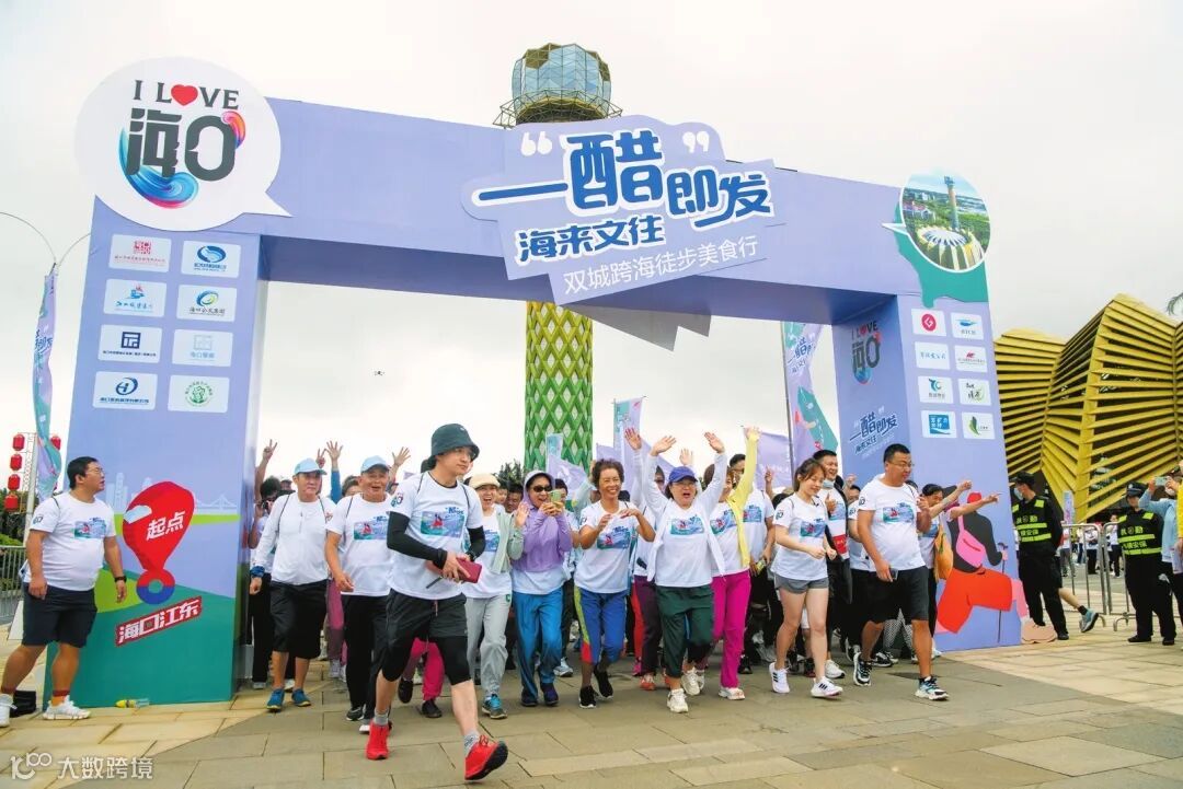 5月14日上午,“一‘醋’即发,海来文往”跨海徒步美食行活动在海口市江东新区展示中心启动,参加活动的选手从起点出发前往文昌。海口日报记者 陈长宇 摄
