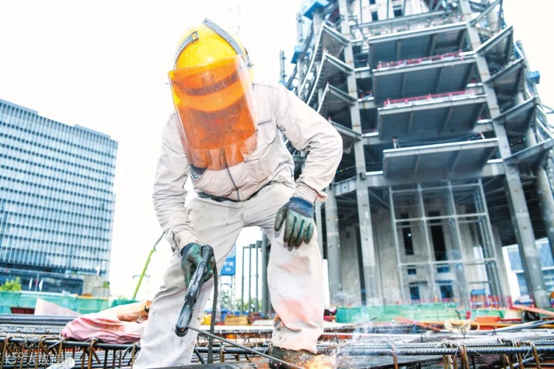 7月2日,在中石化自贸大厦项目施工现场,工作人员在进行焊接工作。该项目通过“BIM+智慧工地”应用,让这座超高层建筑实现全穿插式立体施工。海口日报记者 康登淋 摄
