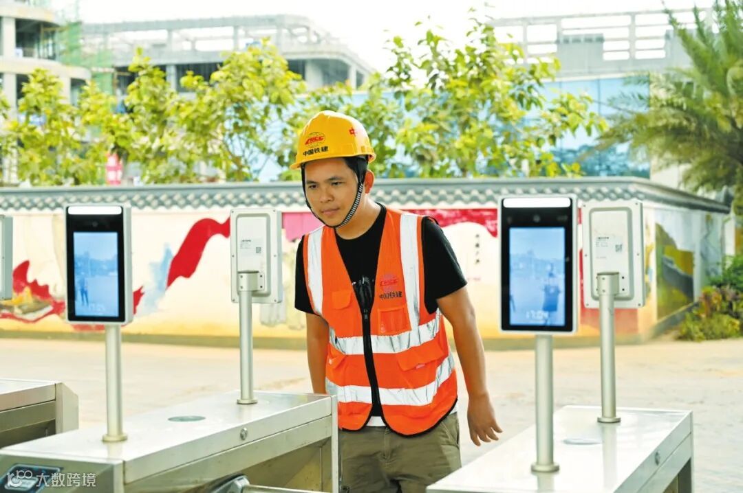 海南医学院第一附属医院江东新院区项目现场,工人通过刷脸通行。海口日报融媒体记者 石中华 摄