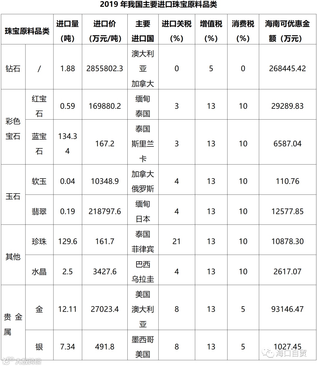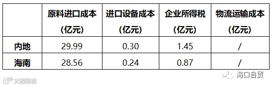 广东省是我珠宝加工企业集聚分布区域,珠三角也是我国最大的珠宝消费区域,我国珠宝原料(以钻石为例)主要进口国澳大利亚。对“海运进口1吨毛胚钻石从澳大利亚到惠州加工并销售”与“海运进口1吨毛胚钻石从澳大利亚到海口生产加工后于市内免税店销售”进行比较: