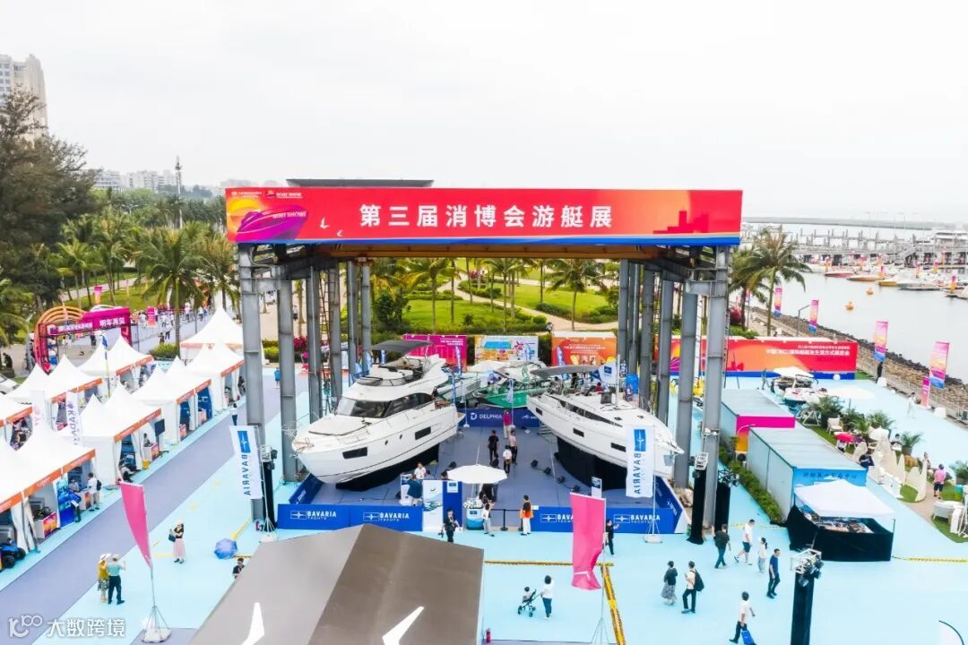 第三届消博会游艇展以海口市国家帆船基地公共码头为主展区,总面积18万平方米,吸引了225艘知名品牌船艇参加,包括美国游艇品牌瑞格、克里斯,英国游艇制造商公主游艇,法国游艇品牌栢利、亚诺,意大利游艇制造商法拉帝、阿兹慕,德国游艇品牌巴伐利亚,以及国内游艇品牌珐伊船艇、尚源和巧合等。其中,多家游艇参展商在展会期间举办了新品首发首秀仪式。