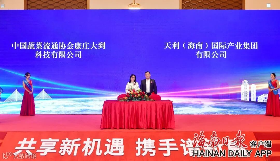当天,天利(海南)国际产业集团分别与中国蔬菜流通协会全资子公司康庄大到科技有限公司、香港利华环球采购集团等7家单位签署战略合作协议,将在物流冷冻仓储、农产品精深加工、农副产品采购及销售、新型智慧托盘批量生产等方面开展合作,共同推动国际农业产业园建设发展。