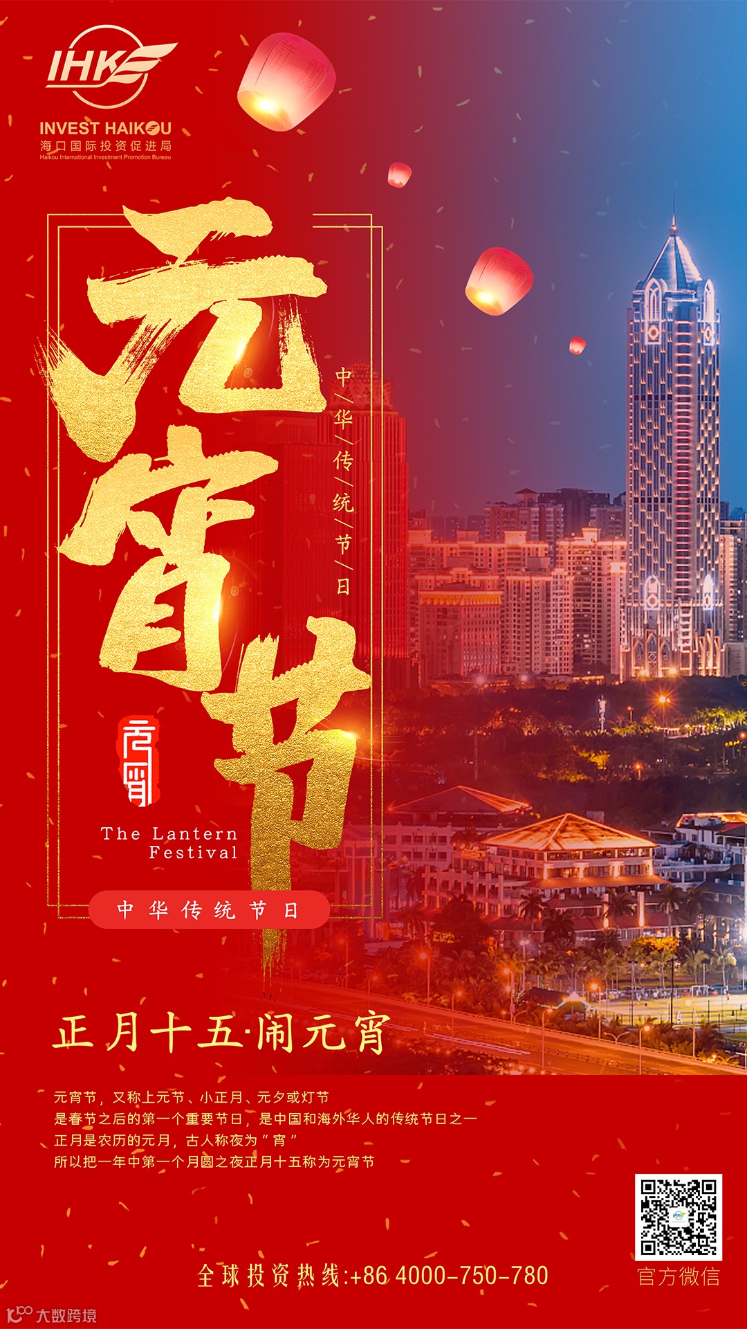 万家灯火,共聚团圆!海口国际投资促进局祝您元宵喜乐,阖家幸福!