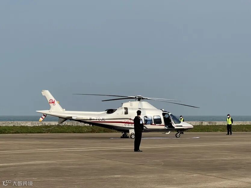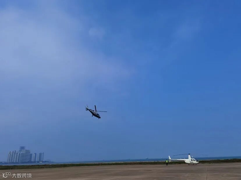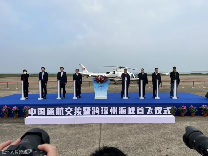 当天交接仪式后,中国通航直升机从海口起飞,跨越琼州海峡直达广东海安并进行往返飞行,然后沿海口西海岸进行海岸线飞行体验。
