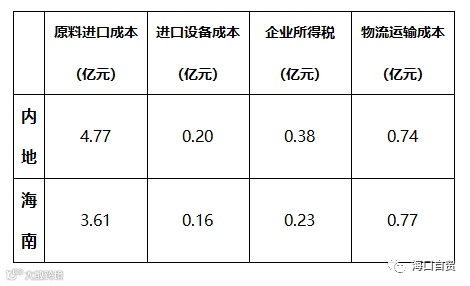 综上,通过对目前国内某知名皮具加工企业的加工基地进行综合经营分析,结合海南自由贸易港政策可知,不考虑设备成本多年摊销,进口皮具加工企业落位泉州年经营成本约为6.09亿元,落地海南的年经营成本约为4.77亿元,可节省总计约1.32亿元。