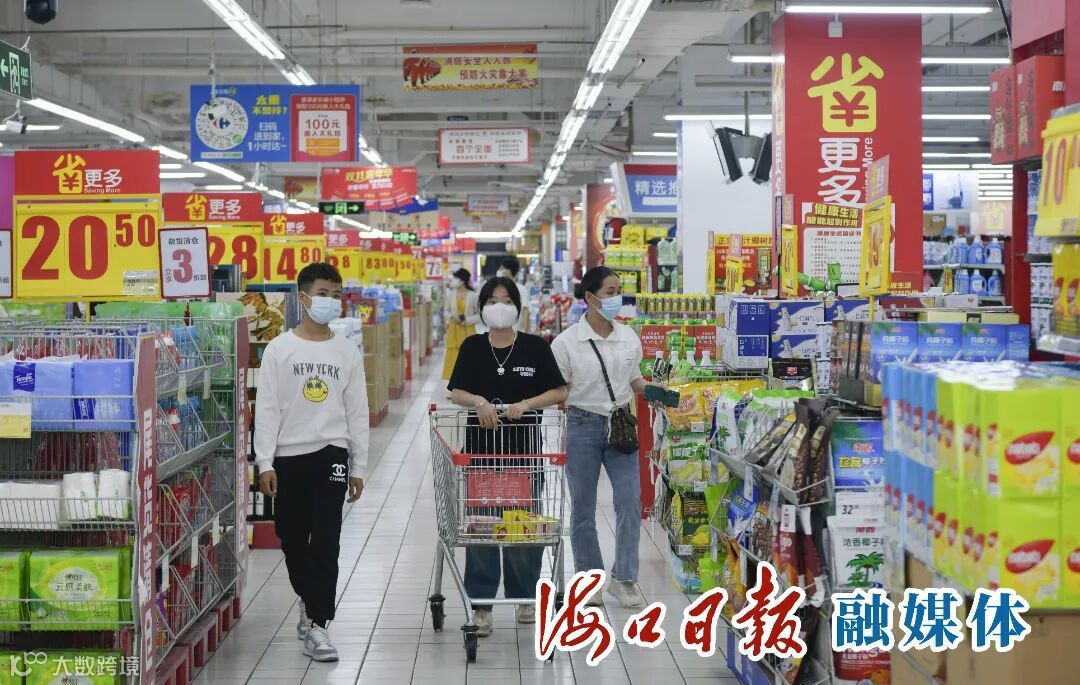 市民在海口家乐福红城湖店内选购商品。