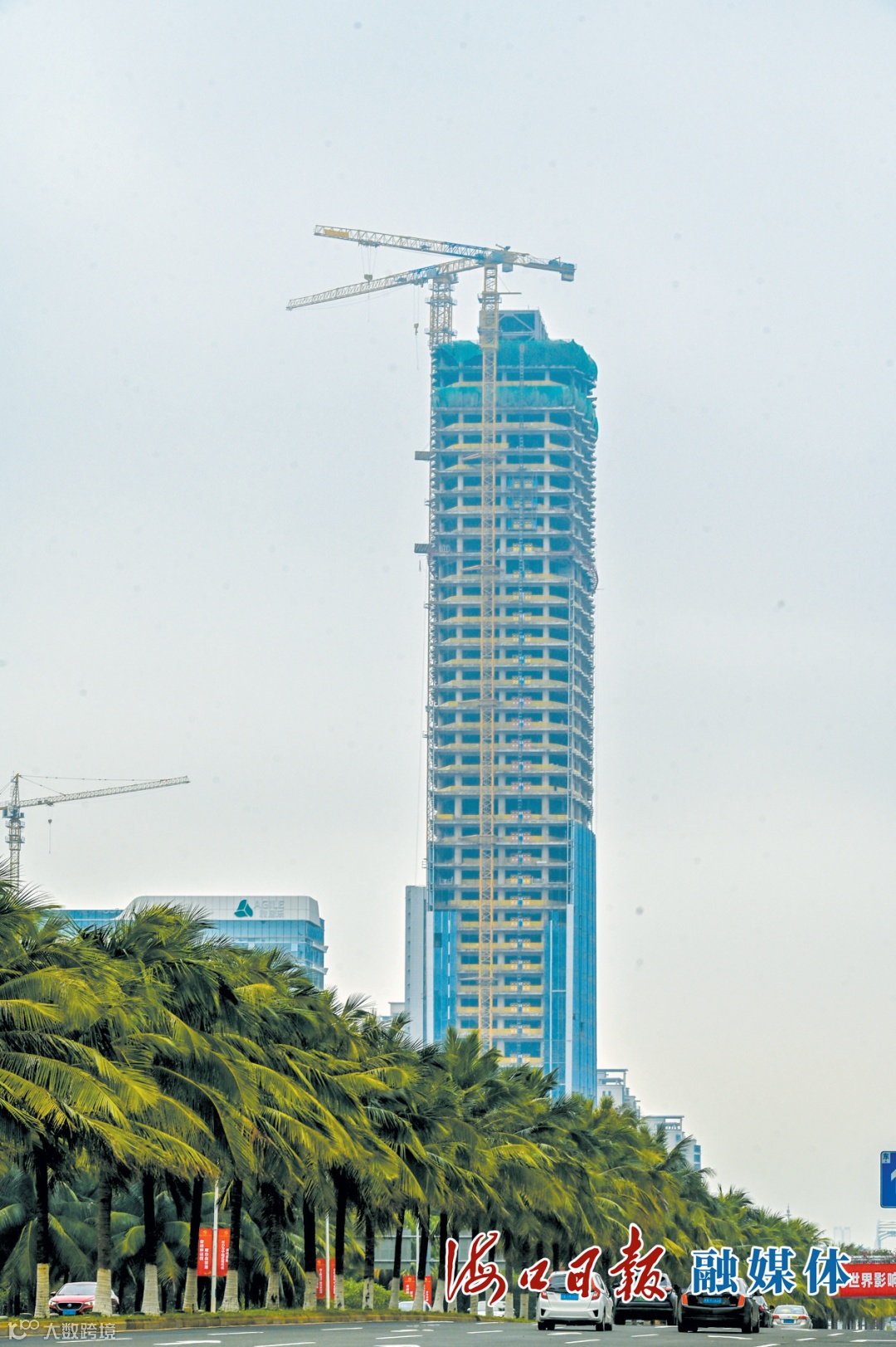 放眼全市,施工繁忙的超高层建筑正不断提升城市形象。288米高的海口世贸大厦矗立在滨海大道,背靠海口秀英港,部分商业配套已进入收尾阶段,预计明年年初投入使用。