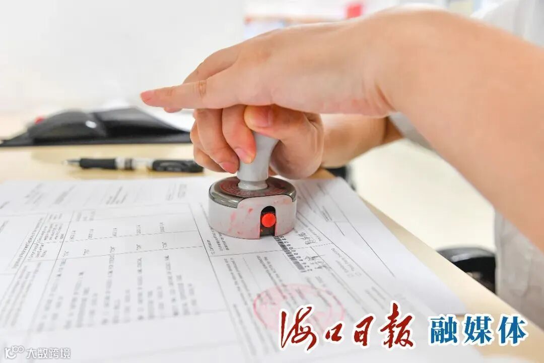在海口港海关综合业务科,海关政务服务开设绿色通道,快速签发RCEP原产地证书手续。海口日报融媒体见习记者 杨鹤 摄