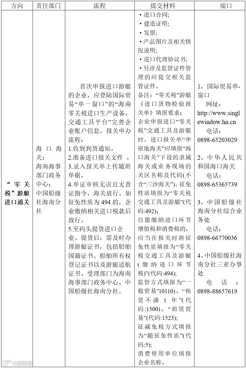 ①游艇出入境口岸:三亚鸿洲国际游艇会码头口岸、海口港口岸、清澜港口岸、洋浦港口岸、八所港口岸。
