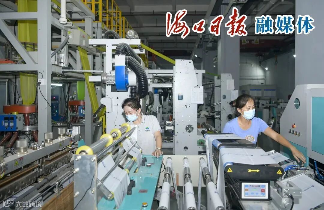 位于海口国家高新区的中科信晖(海南)新材料科技有限公司,工作人员正操作制袋机生产可降解连卷袋。海口日报融媒体记者 康登淋 摄
