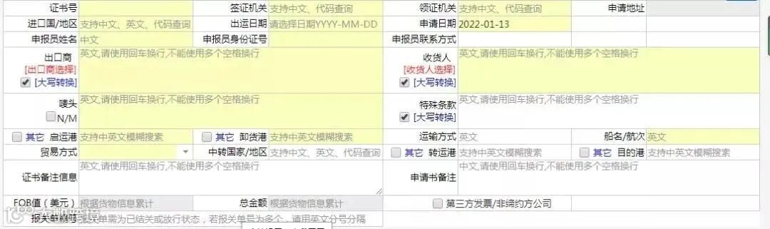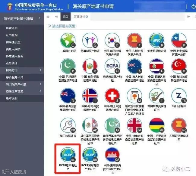 点击“RCEP原产地证书”。证书申报需填写三个方面内容: