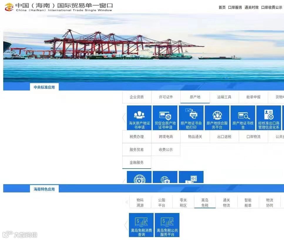 申请人也可登录“中国(海南)国际贸易单一窗口”(http://www.singlewindow.hn.cn/hnsw-portal/index),点击“原产地”-“海关原产地证书申请”,进行原产地证书申报。