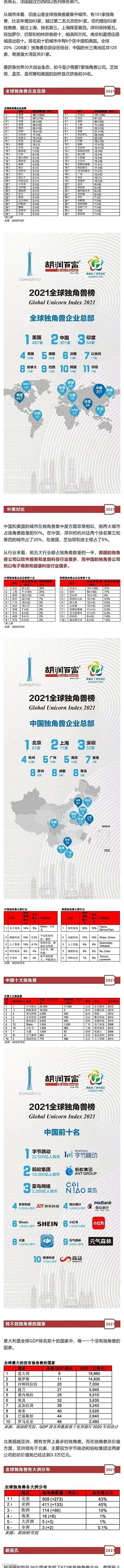 胡润研究院《2021全球独角兽榜》发布,中国这家公司位居全球榜首!