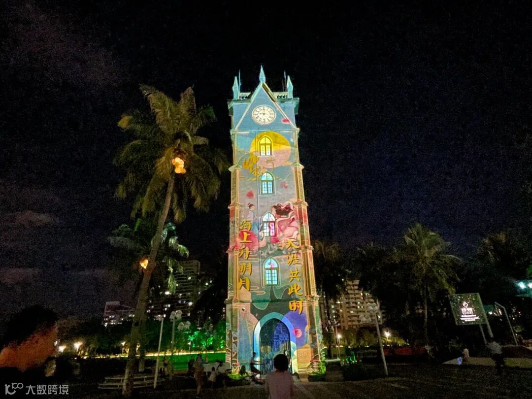 9月19日晚,海口钟楼中秋主题光影秀上演。