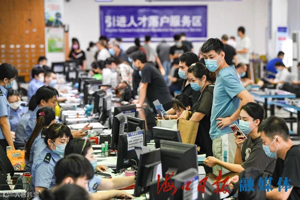 9月1日,记者走访海口市公安局美兰分局办证中心、海口市公安局龙华分局办证中心看到,“引进人才落户服务区”内,咨询办理人才落户业务的人排起了长队,工作人员熟练、耐心地讲解政策、办理业务。
