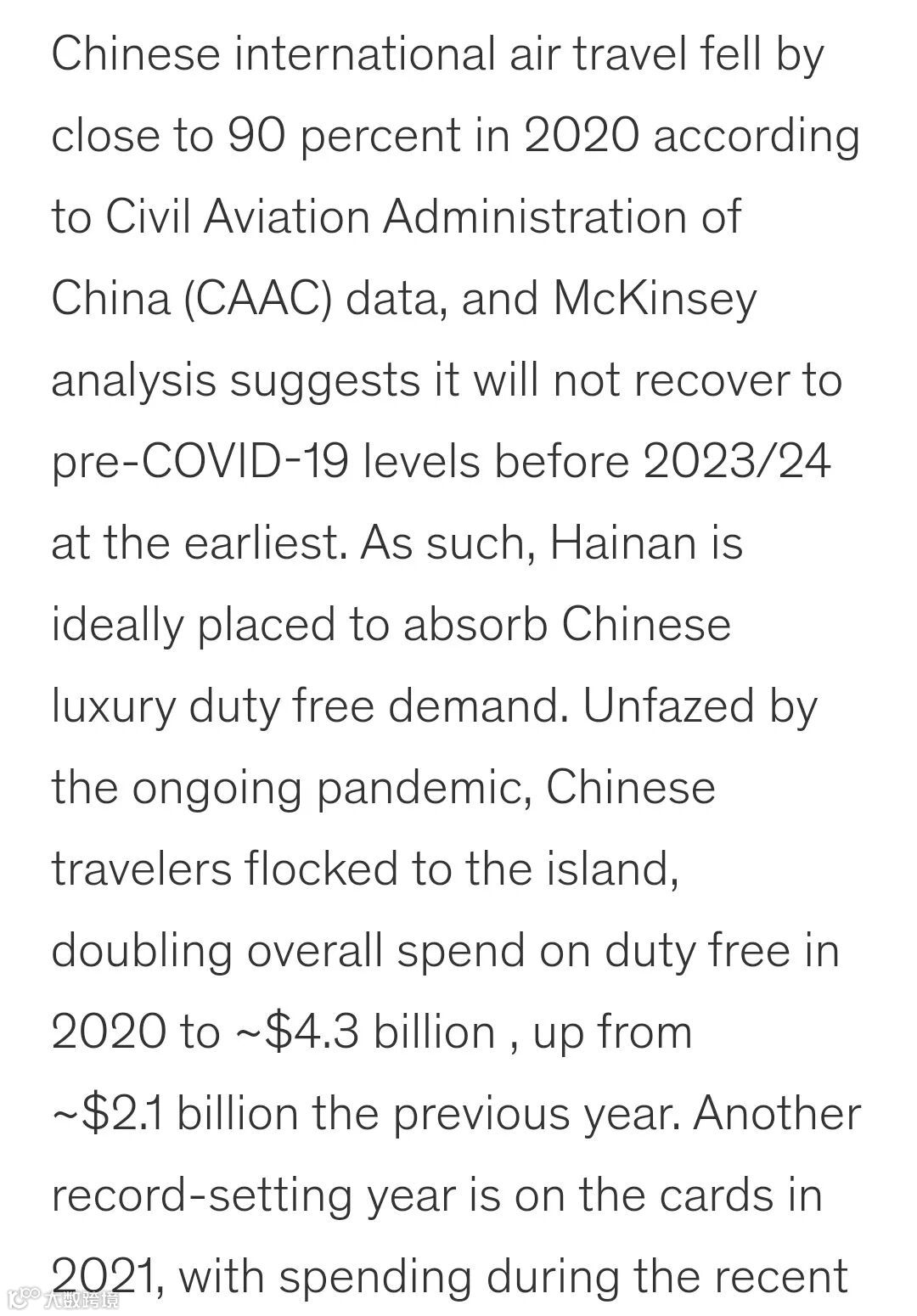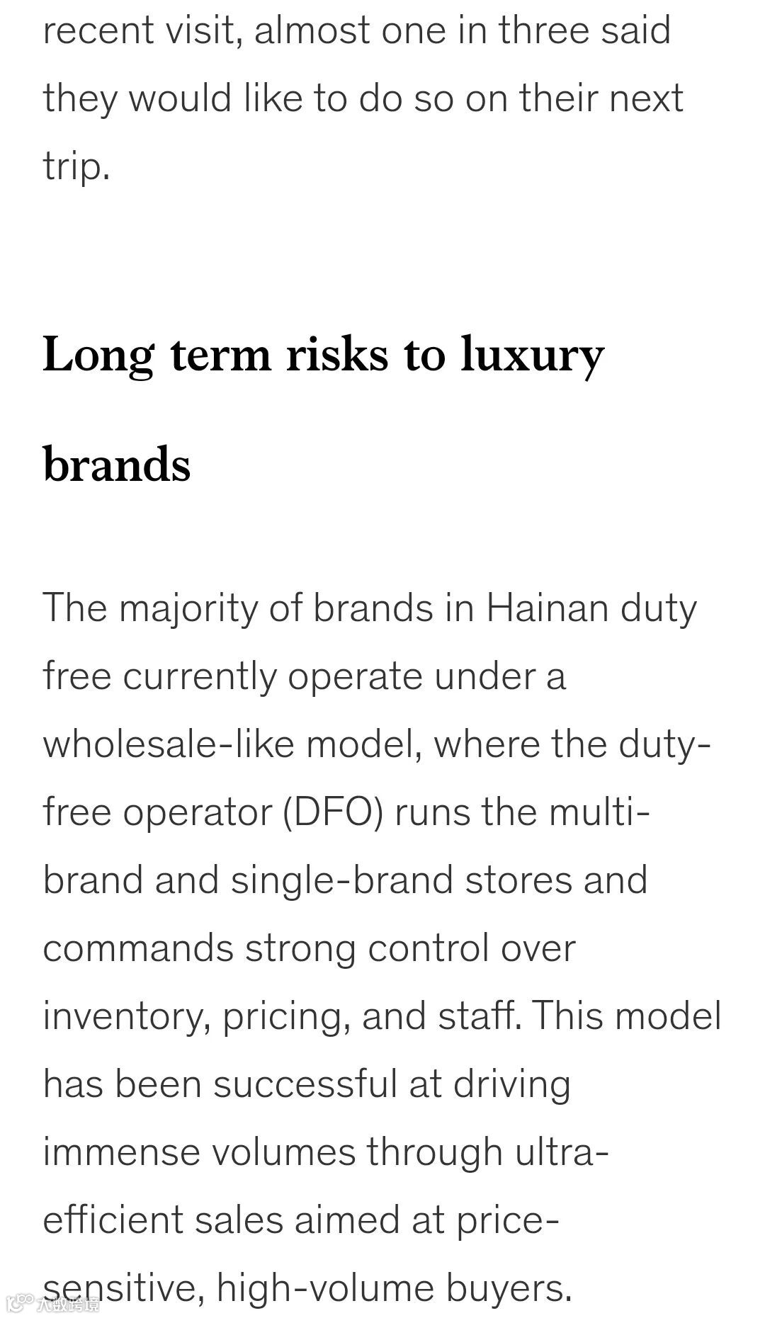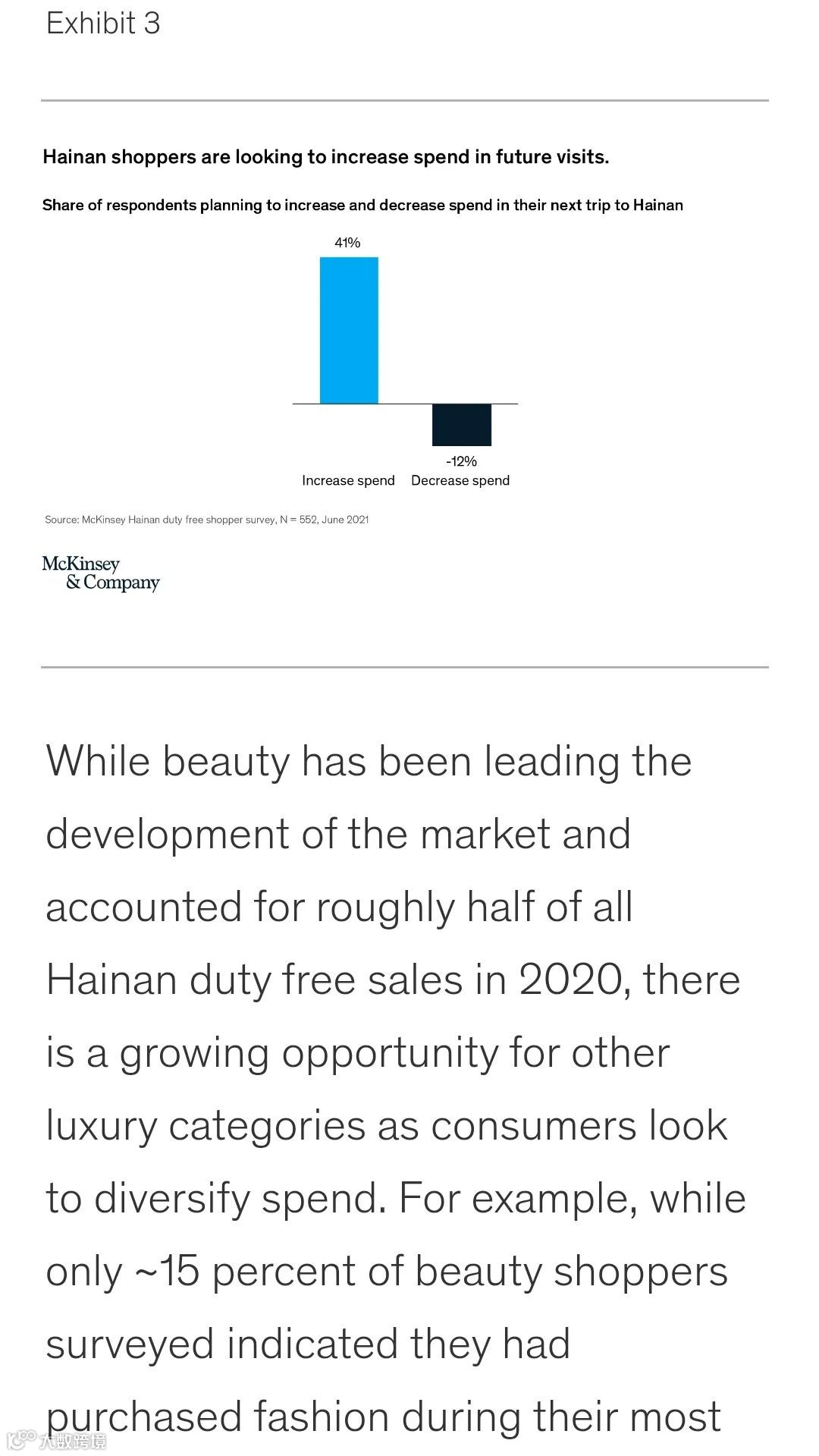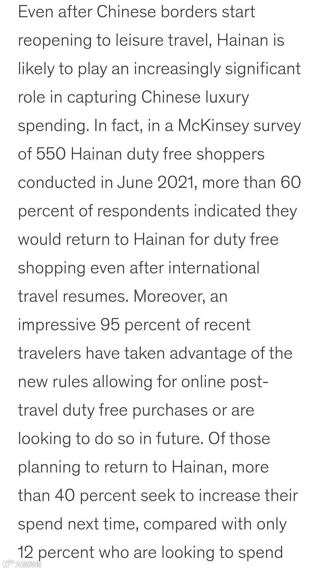 “例如,尽管只有约 15% 的接受调查的受访旅客表示他们曾在最近一次的海南旅行中购买了奢侈品时装类,但几乎三分之一的受访旅客都表示他们下一次有意愿购买该品类。”