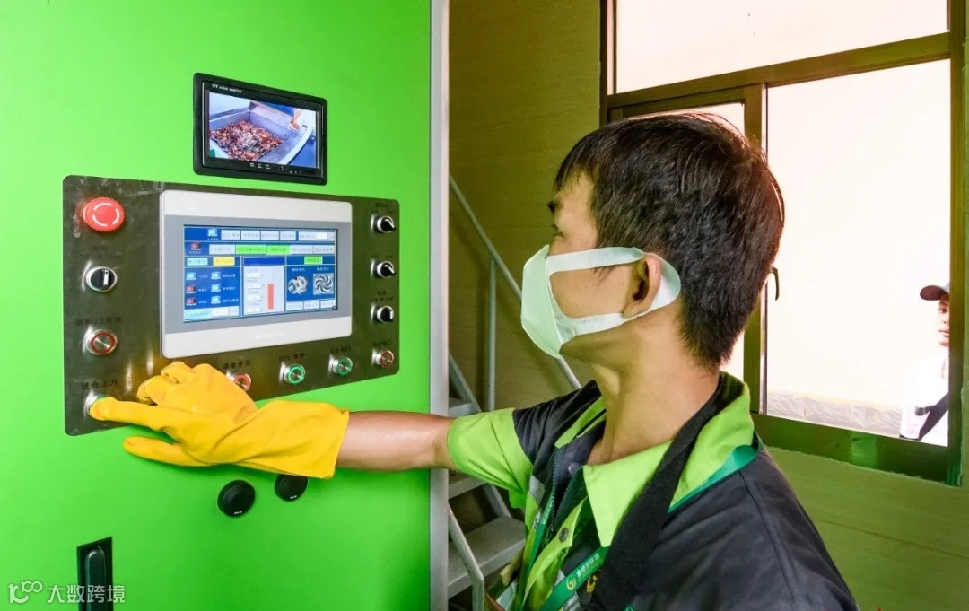 在美兰区的厨余垃圾处理智能环保屋示范点,工作人员正在演示厨余垃圾处理设备的操作。陈长宇 摄