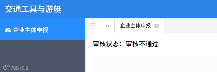 7.在审核端审批不通过会在左上角提示审批不通过,此时申请可以修改并重新提交。