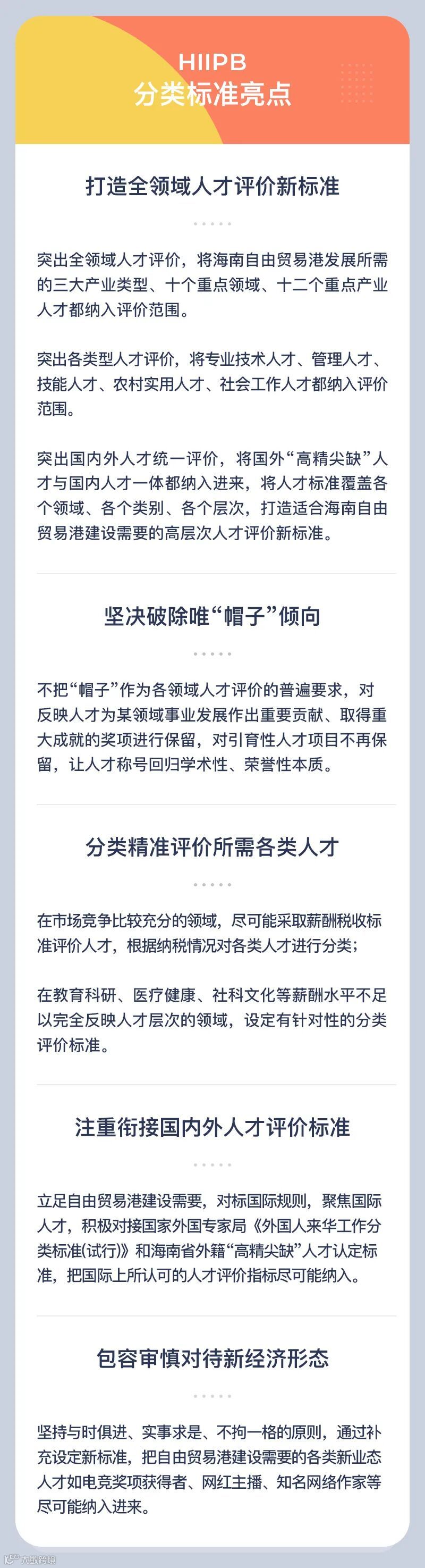 为贯彻落实《海南自由贸易港建设总体方案》“以薪酬水平为主要指标评估人力资源类别,建立市场导向的人才机制”要求,创新人才评价机制,发挥人才评价“指挥棒”作用,海南近日印发了《海南自由贸易港高层次人才认定办法》《海南自由贸易港高层次人才分类标准(2020)》(以下分别简称《认定办法》和《分类标准(2020)》)。