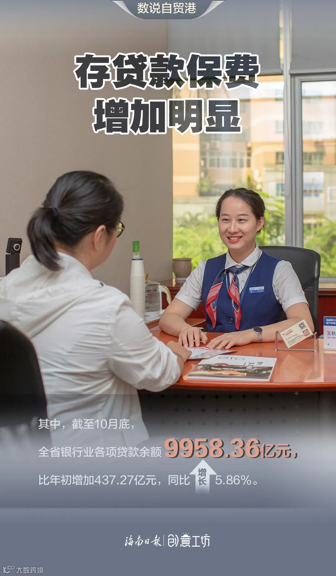 • 截至今年10月底,全省银行业各项贷款余额9958.36亿元,比年初增加437.27亿元,同比增长5.86%。
