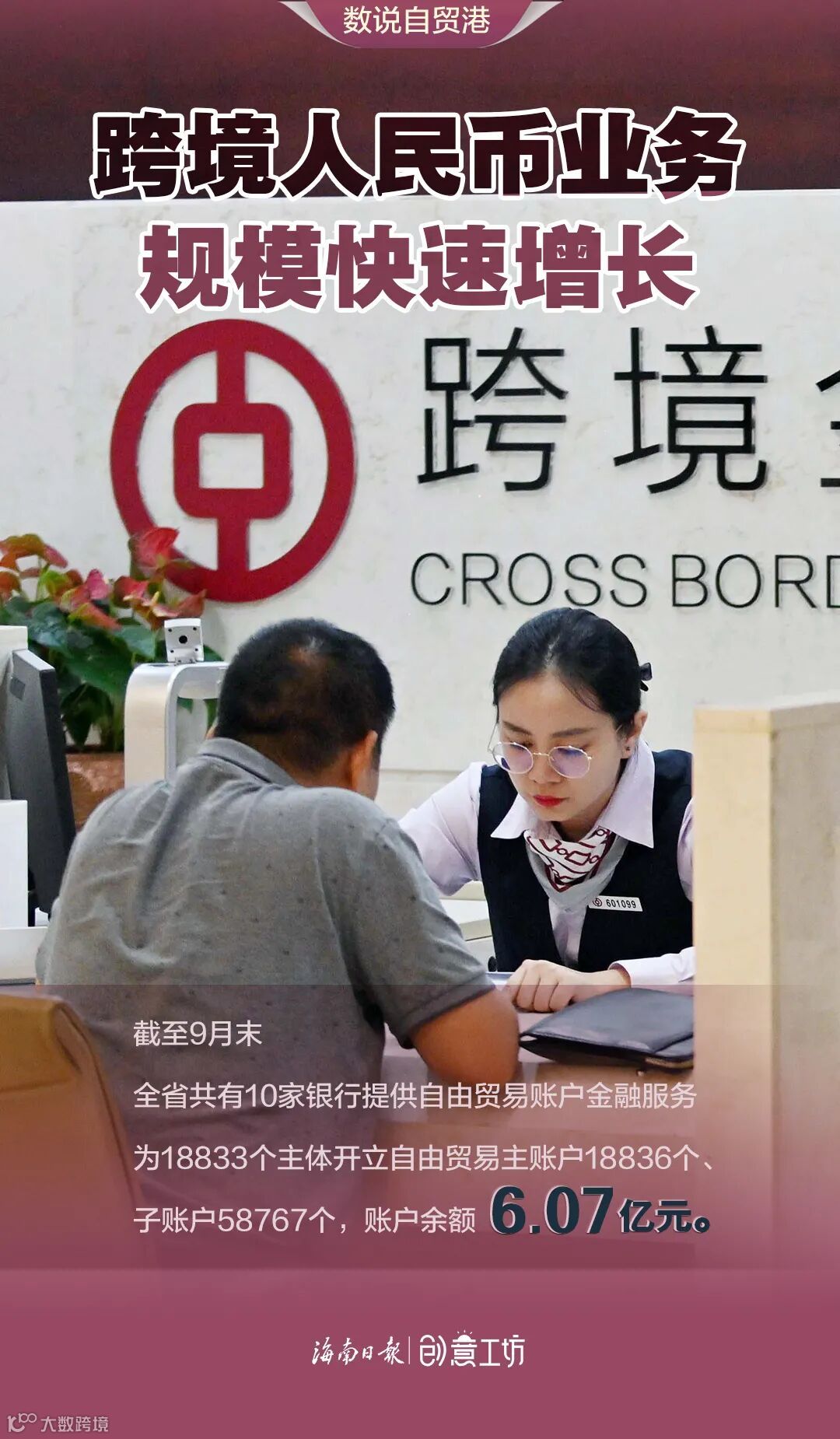 截至9月末,全省共有10家银行提供自由贸易账户金融服务,为18833个主体开立自由贸易主账户18836个、子账户58767个,账户余额6.07亿元。