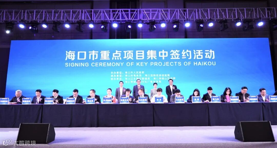 海口国际投资促进局、海口江东新区管理局等单位与10家知名企业进行签约。