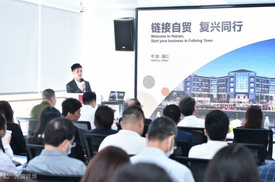 海口市人民政府副秘书长王品文对海口市金融业从投资机会多、运营成本低、业务更自由三个方面进行全面的介绍。并表示海南自贸港的金融开放创新,将全面围绕实体经济高质量发展以及贸易投资自由化便利化的金融需要,推动与国际高标准经贸规则的全方位对接,加快构建与开放型经济新体制相适应的体制和机制,海口金融业蕴含巨大商机。江东新区、复兴城园区等重点园区代表从产业政策、承载条件和落地服务等方面进行了详细推介。